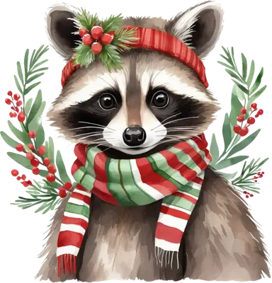 Cozy Christmas Raccoon DTF Transfer | Winter Holiday Animal Iron On