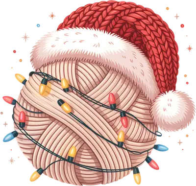 Cozy Christmas Yarn Ball Santa Hat & Lights DTF Transfer