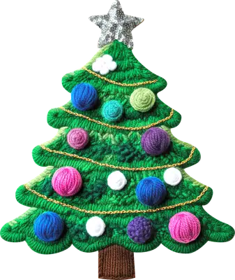 Cozy Crochet Christmas Tree DTF Transfer with Yarn Ball Ornaments & Sequin Star