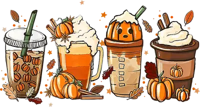 Cozy Fall Pumpkin Spice Drinks DTF Transfer | Autumn Coffee Boba Latte