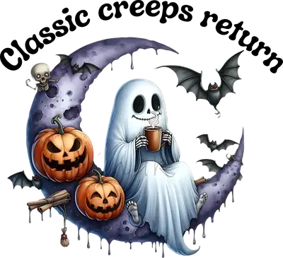 Cozy Ghost Moon Halloween DTF Transfer - Classic Creeps Return