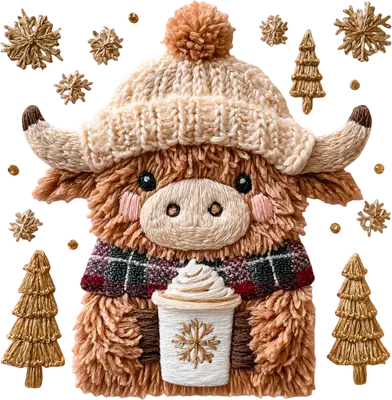 See allCapture the heartwarming spirit of the holidays with this charming Highland Cow Christmas DTF transfer. Featuring a super fluffy, embroidered-style Highland cow adorned in a cozy knit winter hat with a pom-pom and a festive plaid scarf, this design radiates warmth and cuteness. The sweet cow holds a mug of hot cocoa topped with whipped cream and a delicate snowflake, surrounded by whimsical golden snowflakes and stylized Christmas trees, making it a perfect ready to press graphic for the winter season. This delightful design is an ideal iron on transfer for anyone looking to add a touch of adorable festivity to their wardrobe or crafts. It's perfect for Christmas gift shoppers, crafters, small t-shirt businesses, and Highland cow enthusiasts. Imagine creating matching family holiday shirts, unique gifts for friends, or charming apparel for your boutique inventory. It also makes a fantastic heat transfer design for animal lovers and those who cherish cozy winter vibes. Applying this heat press transfer is simple and efficient, suitable for a wide range of materials including cotton, polyester, cotton-poly blends, and even nylon. Achieve professional results with a heat press (300-325°F for 15 seconds, medium pressure) or even a household iron. Forget tedious weeding; just peel and press! This versatile design is perfect for custom t-shirts, cozy hoodies, comfortable sweatshirts, spacious tote bags, cute baby onesies, festive aprons, and decorative pillow covers. For lasting durability, wash garments inside out and tumble dry on low. Experience exceptional quality with every ready to press transfer. This design boasts vibrant, full-color printing with intricate details that bring the fluffy texture and festive elements to life. It's crack-resistant, offers a soft hand feel, and avoids the heavy vinyl sensation. Each direct to film transfer is printed on premium DTF film, featuring a strong adhesive backing to ensure professional-grade application and a beautiful finish every time.
