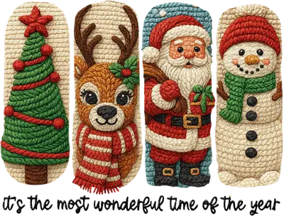 Cozy Knitted Christmas DTF Transfer: Santa, Reindeer, Tree, Snowman