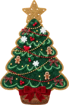 Cozy Knitted Christmas Tree DTF Transfer with Gingerbread & Snowflakes