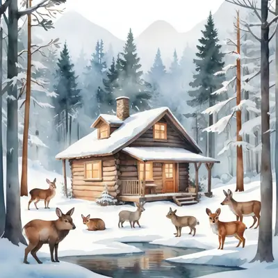 Cozy Winter Cabin & Deer DTF Transfer | Snowy Forest Heat Press Design