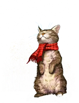 Cozy Winter Cat DTF Transfer - Red Scarf & Snow Design