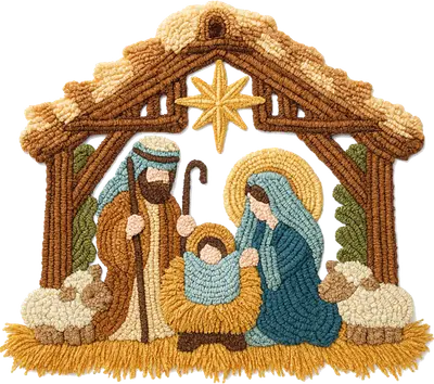 Cozy Yarn Art Nativity Scene DTF Transfer - Christmas Holy Family