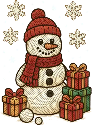 Cozy Yarn Snowman with Gifts DTF Transfer | Christmas Ready to Press Design