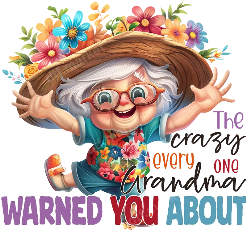 See allUnleash your inner wild child with this hilarious and vibrant DTF transfer featuring a joyful, cartoon-style grandma in a beautiful floral straw hat and matching shirt. With arms wide open and a cheerful grin, she proudly announces: "The crazy everyone Grandma WARNED YOU ABOUT." This eye-catching design is a perfect direct to film transfer for adding a touch of humor and color to any garment, and it comes completely ready to press right out of the package. This funny grandma design is tailor-made for grandmas with a great sense of humor, their loving families, and anyone who appreciates a sassy, lighthearted message. It makes an unforgettable gift for Mother's Day, Grandparent's Day, birthdays, family reunions, or just a fun everyday statement piece. Surprise your favorite grandma, or treat yourself to an apparel transfer that truly captures the spirit of a fun-loving matriarch. Applying this heat transfer is a breeze! Simply use a heat press at 300-325°F for 15 seconds with medium, even pressure. While a heat press is recommended for optimal results, you can also achieve great adhesion with a household iron (firm pressure, no steam, 30 seconds). Our ready to press transfers require no weeding, cutting, or complicated steps, making customization quick and easy. This iron on transfer works seamlessly on a wide range of materials, including cotton, polyester, and various blends. Experience professional quality with our premium DTF transfers. Each design boasts incredibly vibrant colors that pop, a soft-to-the-touch feel, and superior stretchability, ensuring your garment remains comfortable and crack-resistant even after many washes. We use only the highest-grade DTF film and strong adhesive powder for maximum durability, ensuring your t-shirt transfer looks fantastic for years to come. Give your creations a professional finish with this high-quality heat press design.