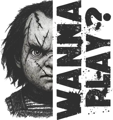 Creepy Doll Wanna Play DTF Transfer | Horror Movie Iron On Design