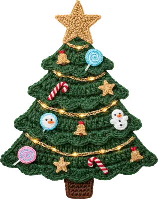 Crochet Christmas Tree DTF Transfer with Lights & Ornaments
