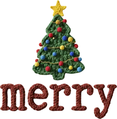 Crochet Christmas Tree & Merry DTF Transfer - Festive Ready To Press
