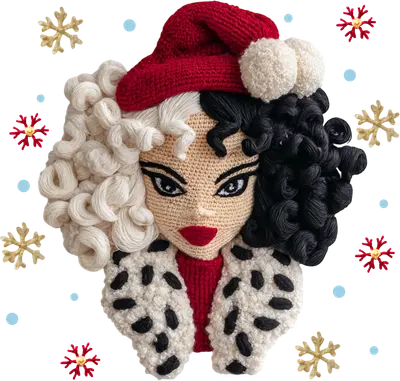 Crochet Cruella Christmas DTF Transfer - Festive Villainess Design