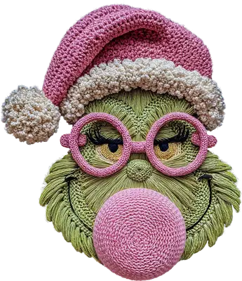 Crocheted Green Character Pink Santa Hat DTF Transfer