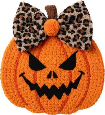 Crocheted Jack-o'-Lantern DTF Transfer | Leopard Bow Pumpkin Halloween Design