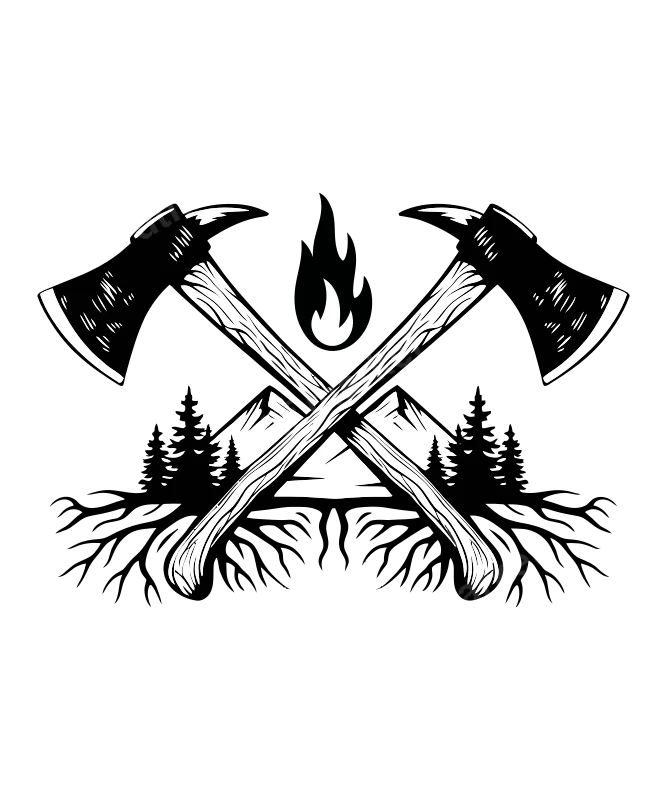 Crossed Axes Mountain Flame DTF Transfer | Wilderness Outdoor Design