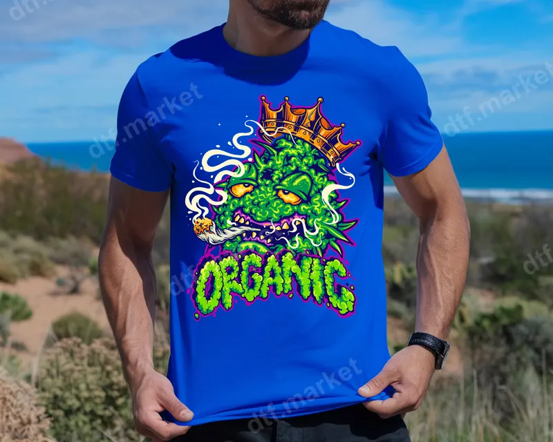 See allUnleash a bold statement with our 'Crowned Organic Cannabis Monster' DTF transfer. This vibrant, eye-catching design features a grumpy, stylized cannabis bud character wearing a golden crown, puffing on a joint, with the word "ORGANIC" boldly displayed below. The psychedelic colors and edgy cartoon aesthetic make this a standout graphic, perfect for anyone looking to add a unique touch to their wardrobe. This high-quality DTF transfer is ready to press, ensuring a professional finish with ease. This unique heat transfer is ideal for cannabis enthusiasts, streetwear aficionados, and anyone with a taste for edgy humor. It makes a fantastic gift for friends, a standout design for festival wear, or a fun addition to your casual apparel for 4/20 celebrations or everyday wear. Express your personality and love for cannabis culture with this distinct, artistically rendered design. It's more than just a shirt design; it's a statement. Applying this apparel transfer is straightforward, whether you use a professional heat press or a household iron. For best results with a heat press, apply at 300-325°F for 15 seconds with medium pressure. This iron on transfer adheres perfectly to a wide range of materials, including cotton, polyester, and various fabric blends. Say goodbye to tedious weeding and complex application processes – our ready to press transfers make customizing garments simple and quick. Our DTF transfers are celebrated for their exceptional quality, delivering vibrant colors that pop and a soft-to-the-touch finish. They are highly durable, crack-resistant, and designed to withstand numerous washes without fading. Made with professional-grade DTF film and strong adhesive, this heat press design ensures your custom apparel looks fantastic and lasts a long time, maintaining its original vibrancy and detail.