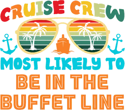 See allThis vibrant DTF transfer features the playful phrase "CRUISE CREW MOST LIKELY TO BE IN THE BUFFET LINE" in a fun, retro-inspired color palette. The design prominently showcases sunglasses reflecting a serene sunset with palm trees and a cruise ship, flanked by two nautical anchors. It captures the joyful, carefree spirit of a vacation at sea, with a humorous nod to one of the most beloved aspects of cruising – the buffet! This eye-catching direct to film transfer is perfect for expressing your love for cruises with a touch of wit and style. This design is a perfect iron on transfer for anyone planning a family cruise, a group vacation with friends, or simply a solo adventure on the high seas. It makes an excellent gift for cruise enthusiasts, travel lovers, or those who appreciate funny apparel. Small t-shirt businesses and Etsy sellers can easily incorporate this heat transfer design into their vacation wear collections, creating unique and popular items for their customers before their next big trip. Imagine matching shirts for a whole cruise crew! This heat press transfer works perfectly on a wide range of materials, including cotton, polyester, and their blends, and even nylon, making it incredibly versatile. Apply it effortlessly with a heat press set to 300-325°F for 15 seconds with medium pressure, or with a household iron. There's no weeding required – just peel and press! It's ideal for custom t-shirts, cozy hoodies, stylish tote bags, fun pillow covers, cute baby onesies, practical aprons, and trendy denim jackets. For long-lasting vibrancy, wash your decorated garments inside out and tumble dry on low. Each ready to press transfer ensures brilliant, full-color printing with exceptional detail. The design is crack-resistant and boasts a soft, lightweight feel, unlike the heavy texture of traditional vinyl. Every direct to film transfer is produced on premium DTF film with a robust adhesive backing, guaranteeing professional-grade results and durable wear for all your custom apparel projects.