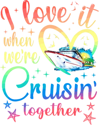 See allEmbark on a sentimental journey with our vibrant "I love it when we're Cruisin' together" DTF transfer. This cheerful design features a majestic cruise ship sailing towards a tropical island sunset, embraced by a rainbow heart and surrounded by sparkling stars and playful starfish. The text, rendered in a captivating rainbow gradient, perfectly captures the joy and connection of shared travel experiences. It's a ready to press design that’s full of vacation vibes and warm sentiments. This charming iron on transfer is perfect for couples, families, or friends who cherish their cruising adventures. Ideal for anniversary trips, honeymoon celebrations, family vacations, or just expressing your love for travel, it makes a thoughtful gift or a fantastic way to create matching outfits for your next voyage. Small t-shirt businesses and crafters looking for unique, high-demand heat transfer designs will find this a popular choice for custom apparel. Applying this heat press transfer is simple and rewarding. It works beautifully on a wide range of materials including cotton, polyester, cotton-poly blends, and even nylon. Achieve professional results with a heat press (recommended settings: 300-325°F for 15 seconds with medium pressure) or a household iron. Forget the tedious weeding – just peel and press! Create custom t-shirts, cozy hoodies, stylish sweatshirts, versatile tote bags, comfy pillow covers, or unique denim jackets. For lasting durability, always wash your finished garment inside out and tumble dry on low heat. Experience premium quality with this ready to press transfer. It boasts vibrant, full-color printing with exceptional fine detail, ensuring your design truly pops. The material is crack-resistant and soft to the touch, providing a comfortable wear experience without the heavy feel of traditional vinyl. Each direct to film transfer is meticulously printed on high-grade DTF film, featuring a strong adhesive backing designed for professional-grade application and results that endure wash after wash.