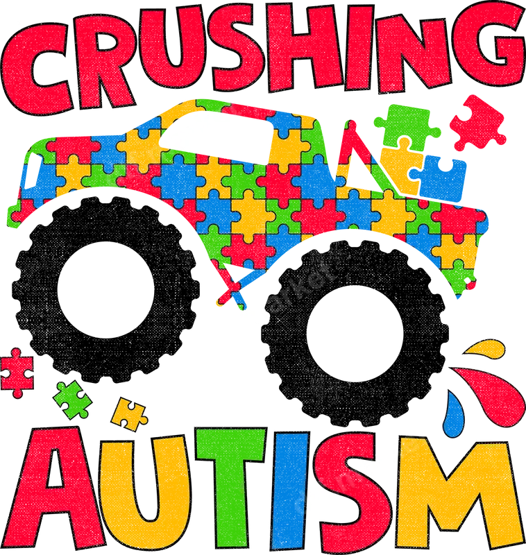 See allThis impactful DTF transfer features a bold monster truck design, vibrantly patterned with the iconic red, yellow, blue, and green puzzle pieces symbolizing autism awareness. Above and below, the powerful message "CRUSHING AUTISM" is displayed in matching textured lettering. This ready to press design combines a strong visual with a meaningful statement. This heat press ready design is ideal for parents, caregivers, educators, and allies who want to raise awareness for autism spectrum disorder. It's perfect for Autism Acceptance Month, charity events, walkathons, or everyday wear to show solidarity. This powerful shirt design also makes a thoughtful and unique gift for advocates. Our premium direct to film transfers are incredibly versatile, applying to cotton, polyester, and various blends. For best results, use a heat press at 300-325°F for 15 seconds with medium pressure, then cold peel. While a heat press is recommended, this high-quality iron on transfer can also be applied with a household iron following specific instructions. No weeding or intricate layering required. Experience the superior quality of our DTF transfers. Each heat press transfer boasts vibrant, true-to-color designs that are highly durable, crack-resistant, and incredibly soft to the touch. Printed on professional-grade DTF film with a strong adhesive, these transfers ensure a long-lasting finish on your garments and accessories. Create eye-catching apparel with ease and confidence.