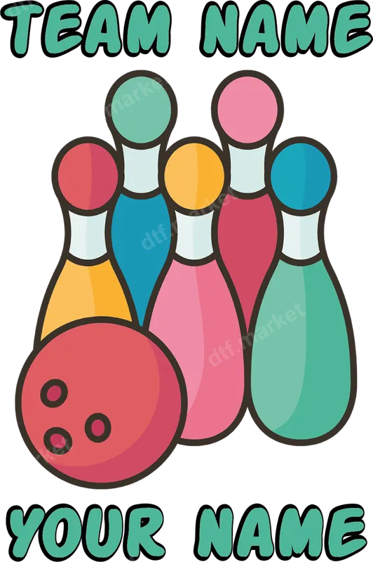 Custom Bowling Team DTF Transfer | Personalized Pins & Ball Design