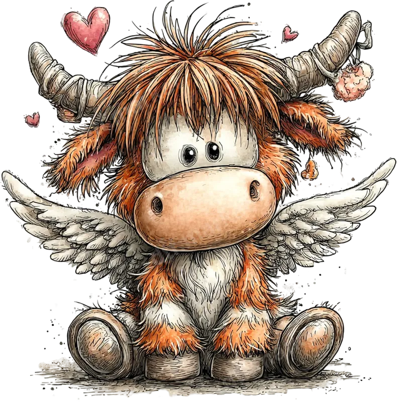 Cute Angel Highland Cow DTF Transfer - Ready to Press Design