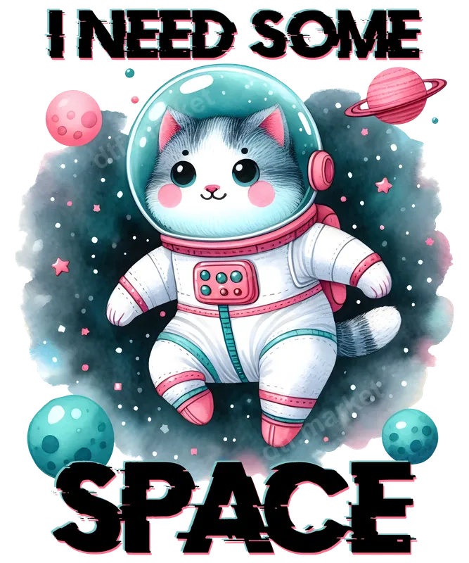 Cute Astronaut Cat 'I Need Some Space' DTF Transfer Design