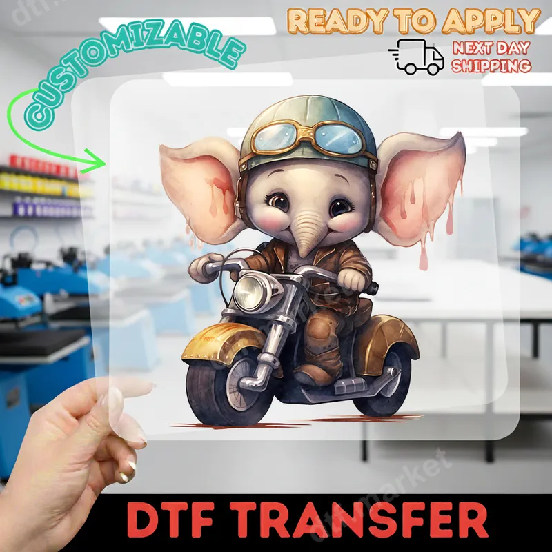 Cute Baby Elephant Biker Motorcycle DTF Transfer Ready to Press