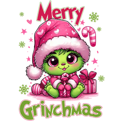 Cute Baby Grinch Merry Grinchmas DTF Transfer | Pink & Green Holiday Design