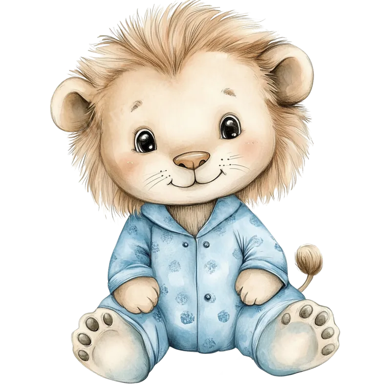 Cute Baby Lion in Blue Pajamas DTF Transfer | Adorable Nursery Animal Design