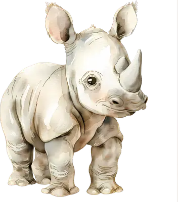 Cute Baby Rhino Watercolor DTF Transfer - Adorable Wildlife Design