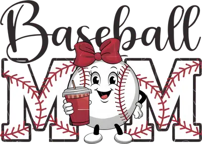 Cute Baseball Mom DTF Transfer with Coffee Character