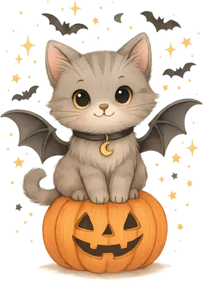 Cute Bat Wing Cat & Jack-o'-Lantern DTF Transfer