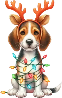 Cute Beagle Puppy Reindeer Antlers Christmas Lights DTF Transfer