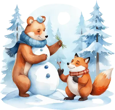 Cute Bear Fox Snowman DTF Transfer | Winter Woodland Animals