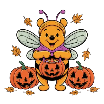 Cute Bee Bear Halloween DTF Transfer with Pumpkins & Fall Leaves