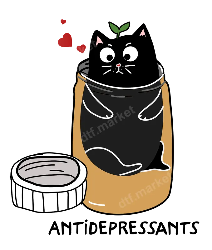 Cute Black Cat Antidepressants DTF Transfer - Ready to Press Heat Transfer