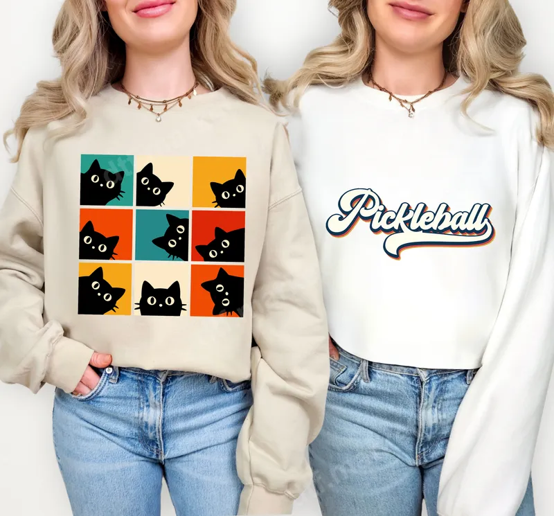 See allThis charming DTF transfer features nine mischievous black cats peeking out from vibrant, retro-colored squares. Each feline face, with its wide-eyed gaze, adds a playful and cute touch, making this design a fantastic ready to press option for anyone who loves their furry friends. The vintage-inspired palette of teal, orange, yellow, and cream backgrounds gives it a timeless appeal. This adorable design is perfect for cat owners, animal lovers, and anyone who appreciates a touch of whimsy. It makes an excellent gift for birthdays, Mother's Day, or just because, for friends and family who adore felines. Ideal for casual wear, pet adoption events, or simply expressing your love for cats, this design brings joy and personality to any garment. It's also a great choice for crafters looking for a fun and eye-catching iron on transfer. Our high-quality heat transfer is incredibly versatile, designed for easy application on a wide range of fabrics including cotton, polyester, and various blends. For best results, use a heat press at 300-325°F for 15 seconds with medium pressure, followed by a cool peel. A household iron can also be used. Unlike vinyl, there's no tedious weeding required, making your crafting process quick and enjoyable. Experience the superior quality of our professional-grade direct to film transfer. These apparel transfers boast incredibly vibrant colors that resist cracking and fading, even after multiple washes. The print is soft to the touch, ensuring maximum comfort on your finished garment. Crafted with durable DTF film and strong adhesive, this t-shirt transfer ensures a long-lasting, professional finish.