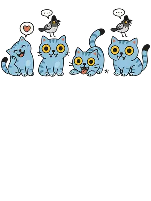 Cute Blue Cartoon Cat Expressions DTF Transfer