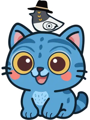 Cute Blue Cat & Bird with Fedora DTF Transfer