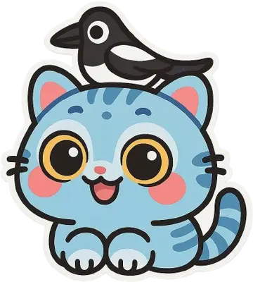 Cute Blue Cat & Magpie DTF Transfer | Adorable Animal Ready to Press Design