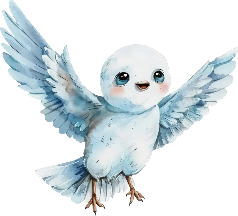 Cute Blue Watercolor Baby Bird Flying DTF Transfer