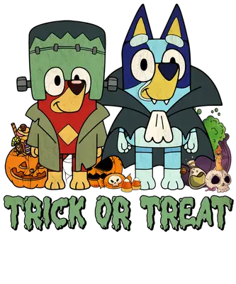 Cute Bluey Bingo Halloween Trick or Treat DTF Transfer - Frankenstein & Vampire