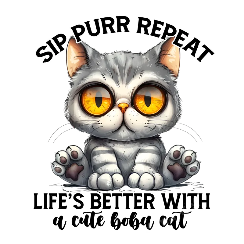 Cute Boba Cat 'Sip Purr Repeat' DTF Transfer - Life's Better