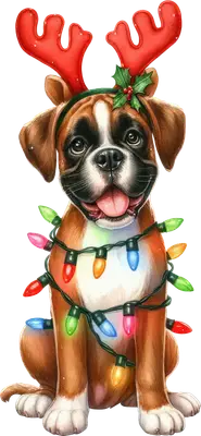 Cute Boxer Puppy Christmas Lights DTF Transfer