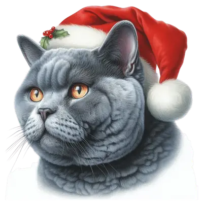 Cute British Shorthair Cat Santa Hat DTF Transfer