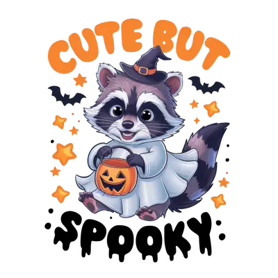 Cute But Spooky Raccoon Halloween DTF Transfer | Ghost Witch Hat