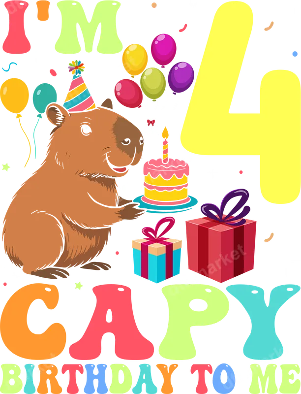 Cute Capybara 4th Birthday DTF Transfer - Ready to Press Design