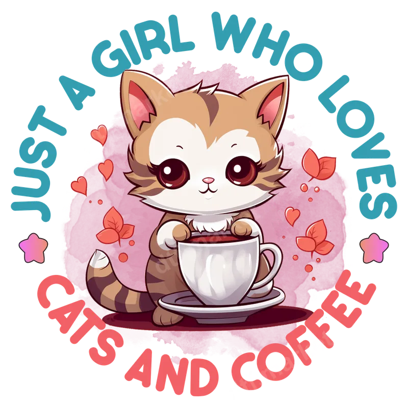 Cute Cat & Coffee Lover DTF Transfer - Just A Girl Who Loves Cats And Coffee
