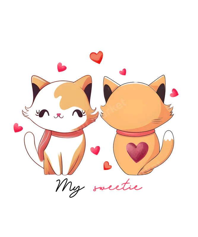 See allCelebrate love and cuteness with this charming DTF transfer featuring two adorable cartoon cats. One cat faces forward with a sweet smile, while the other turns away, revealing a loving heart on its back, all surrounded by floating pink hearts. The phrase "My sweetie" in an elegant script ties the whole romantic scene together, making this design a perfect expression of affection. This high-quality DTF transfer is ready to press onto your favorite garments. This endearing design is perfect for couples, cat lovers, and anyone who wants to share a little warmth. It makes an ideal gift for Valentine's Day, anniversaries, birthdays, or just because. Create custom matching shirts for you and your significant other, or add a heartwarming touch to a tote bag for a beloved friend. It's a wonderful way to personalize apparel for romantic gestures or everyday wear. Applying this heat press transfer is a breeze. Our ready to press transfers work beautifully on a variety of fabrics, including cotton, polyester, and blends. Simply use a heat press at 300-325°F for 15 seconds with medium pressure. For best results, a household iron can also be used with firm, even pressure. There's no complex weeding required, making custom garment creation fast and fun for everyone. Experience professional-grade results with our premium direct to film transfer. These heat press designs boast vibrant colors that truly pop, exceptional crack resistance, and a soft-to-touch finish that blends seamlessly with the fabric. Unlike traditional vinyl transfers, our DTF prints offer superior detail and durability. You'll love the long-lasting quality and comfortable feel of this apparel transfer on any item.